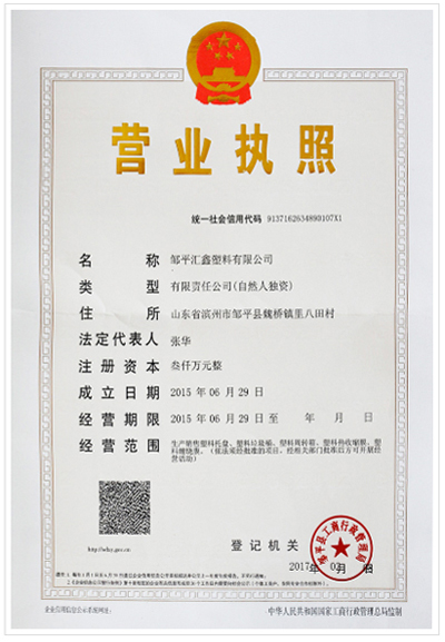 塑料托盤廠家匯鑫塑料營業(yè)執(zhí)照