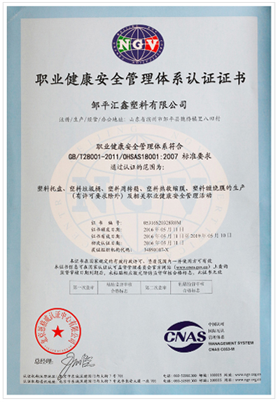 山東塑料托盤(pán)職業(yè)健康安全管理證書(shū)